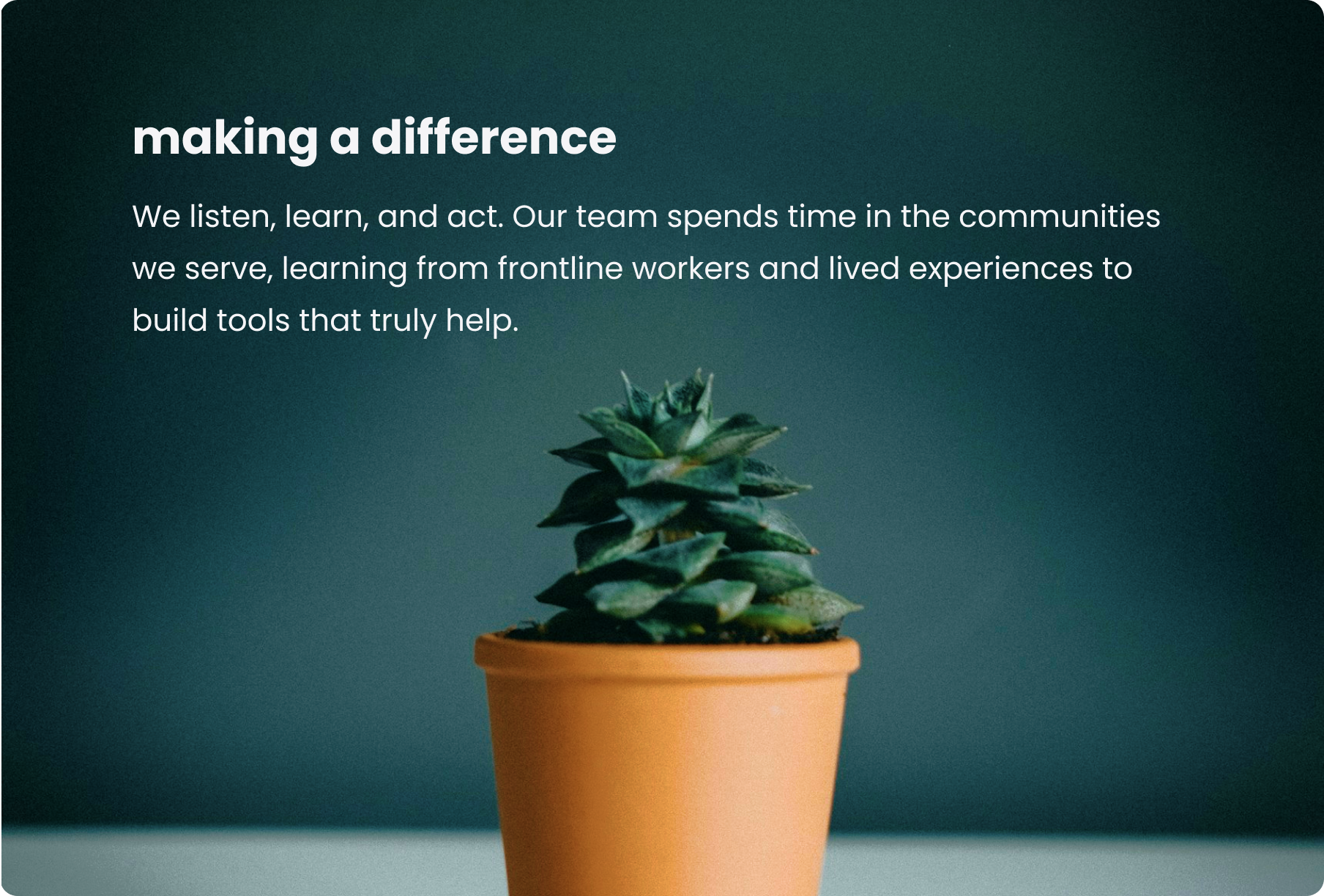 We take risks to build better solutions. Our team constantly explores new ideas and technologies to improve how social programs are delivered.